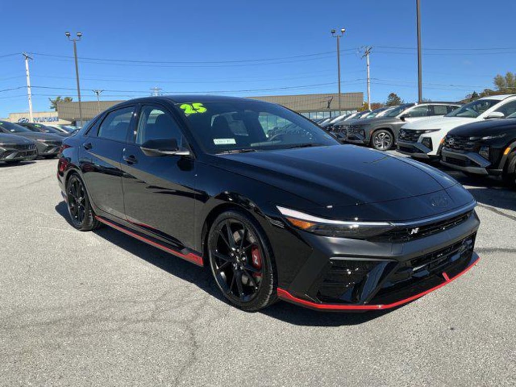Own our 2025 Hyundai Elantra N Sedan in Abyss Black and take to the road in style and fun! Motivated by a TurboCharged 2.0 Liter 4 Cylinder offering 276hp to a 6 Speed Manual transmission for aggressive acceleration and intense engagement with the road ahead. This Front Wheel Drive sedan also exfeatures an electronic limited-slip differential, an electronically controlled suspension, and launch control for even more fun, and it scores nearly 29mpg on the highway. Born bold, our Elantra raises the style bar with high-performance bodywork, LED lighting, a rear wing spoiler, and alloy wheels.