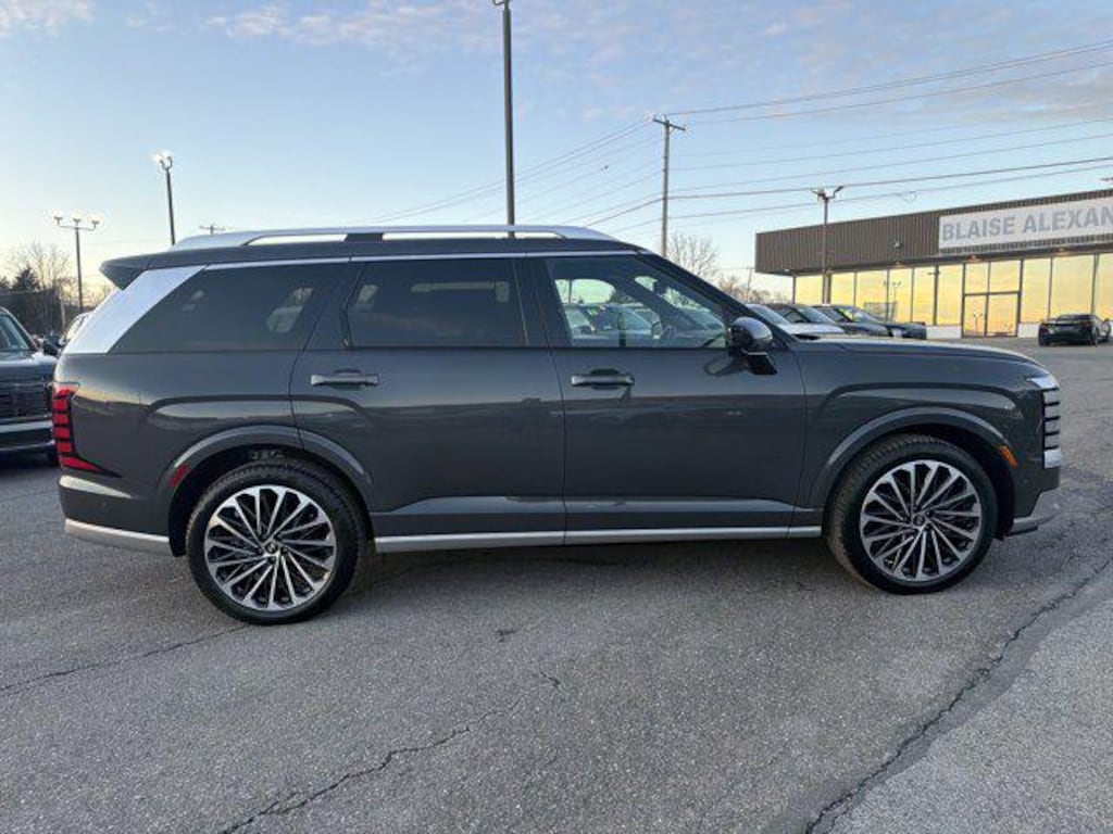 Our top-of-the-line 2026 Hyundai Palisade Hybrid Calligraphy AWD offers upscale features in a stunning Ecotronic Gray Pearl design. Powered by a TurboCharged 2.5 Liter 4 Cylinder and Electric Motor for a combined 329hp through a 6 Speed Automatic transmission, able to adapt to your drive with selectable performance modes. Confident on any road, this All Wheel Drive SUV achieves up to 26mpg on the highway with its efficient hybrid. Bold design elements stand out with LED lighting, silver roof rails, premium 21-inch alloy wheels, and a power liftgate for easier access.