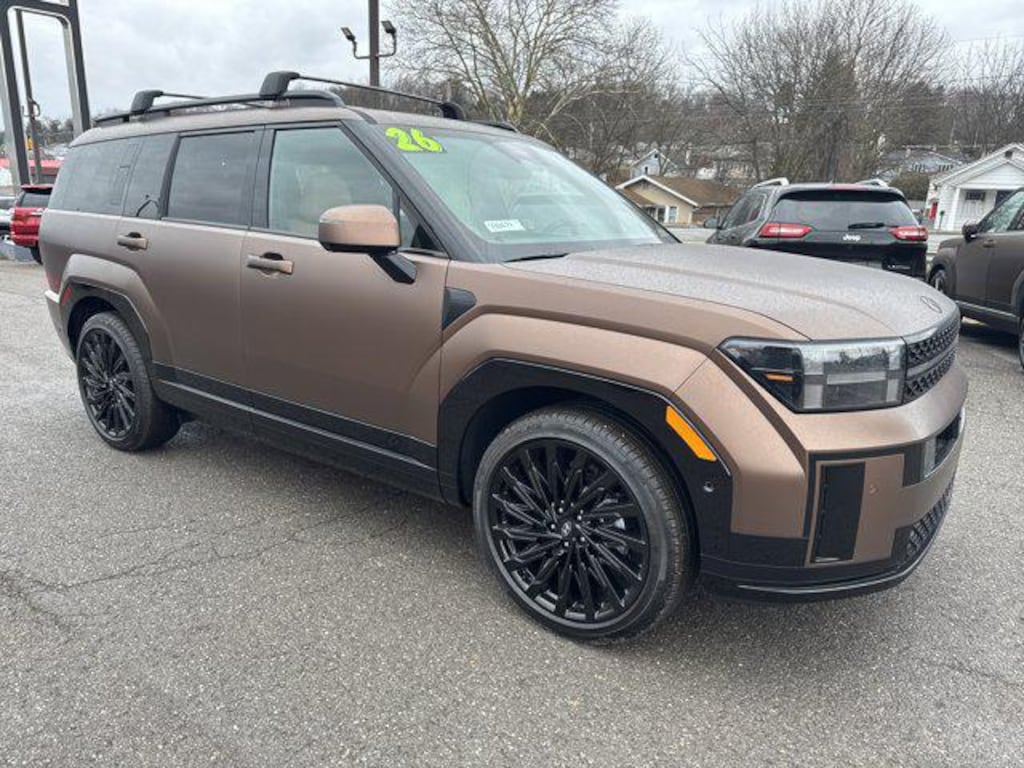 Treat your family to our 2026 Hyundai Santa Fe Calligraphy AWD in Earthy Brass Matte that offers upscale luxuries. Powered by a TurboCharged 2.5 Liter 4 Cylinder providing 277hp to an 8 Speed Dual-clutch Automatic transmission with multiple drive modes. This All Wheel Drive SUV also features fearless performance and composed handling, achieving nearly 28mpg on the highway. Standing strong, our Santa Fe shows off LED lighting, a dual-pane sunroof, a hands-free liftgate, 21-inch alloy wheels, roof rails, and heated power-folding mirrors.