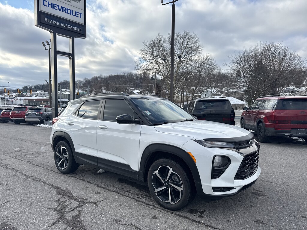 Say hello to our Accident Free 2022 Chevrolet Trailblazer RS AWD, with the Sun & Liftgate Package plus a sporty Summit White appearance, and say goodbye to boredom! Powered by a TurboCharged 1.3 Liter 3 Cylinder supplying 155hp tethered to a 9 Speed Automatic transmission for lively performance. This All Wheel Drive SUV is just as fun dashing through traffic as it is on a weekend adventure, and it scores nearly 30mpg on the highway. Black-out design details then add further flair set off by signature LED lighting, fog lamps, rugged body moldings, heated power mirrors, roof rails, dual exhaust outlets, and gloss-black alloy wheels, plus our package's dual-pane sunroof and hands-free liftgate with logo projection.