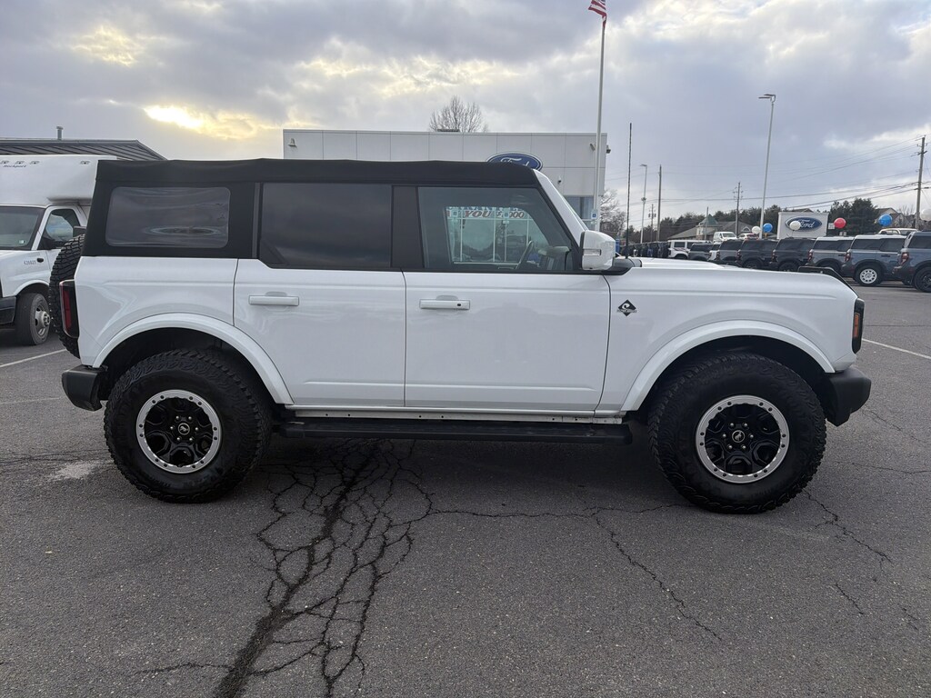 Oxford White 2022 Ford Bronco Outer Banks 4WD 2.3L EcoBoost I-4 ABS brakes, Alloy wheels, Compass, Electronic Stability Control, Front dual zone A/C, Heated door mirrors, Heated front seats, Illuminated entry, Low tire pressure warning, Remote keyless entry, Traction control.
