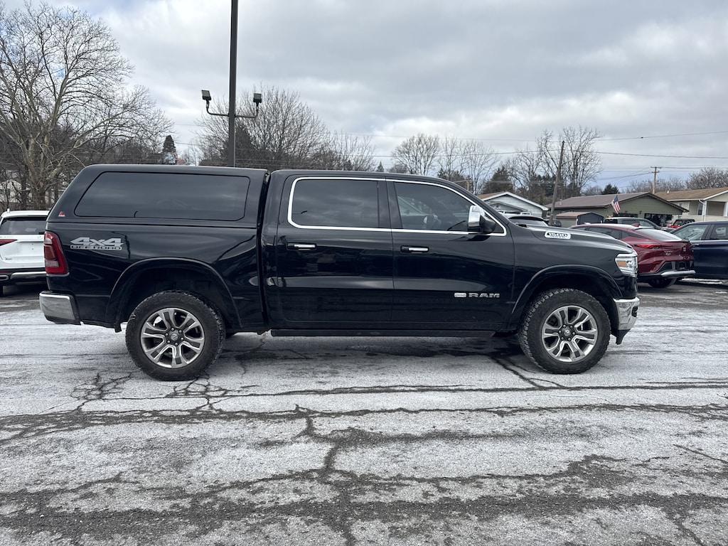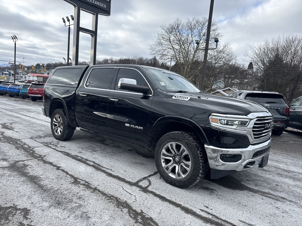 Check out our 2019 RAM 1500 Laramie Longhorn Crew Cab 4X4 with the Level 1 Equipment Package in Diamond Black Crystal Pearl! Powered by a 5.7 Liter HEMI V8 that generates 395hp paired to an 8 Speed Automatic transmission for amazing towing capabilities. Step up to our Four Wheel Drive truck to see this incredibly sharp-looking truck command attention while attaining nearly 21mpg on the highway. You'll appreciate the Class IV receiver hitch, a panoramic sunroof, power running boards, locking tailgate, LED bed lighting, chrome accents, and a protective spray-on Bedliner.